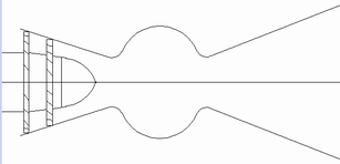 我所設(shè)想的飛機(jī)發(fā)動機(jī)如圖所示,與現(xiàn)有的飛機(jī)發(fā)動機(jī)相比,只有進(jìn)氣的壓縮蝸輪部分,沒有排氣的蝸輪部分,后段高溫部分只是一個空殼子。進(jìn)氣壓縮蝸輪由另一臺發(fā)動機(jī)帶動壓縮空氣。蝸輪錐頭可以向氣流方向運(yùn)動,堵住進(jìn)氣口,成為箭發(fā)動機(jī)。一臺發(fā)動機(jī)有多種功能,這樣設(shè)計(jì)會有如下優(yōu)點(diǎn):