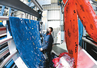 江蘇省連云港市金融機構日前對認定的142家疫情防控重點保障企業(yè)加大對接服務力度,落實優(yōu)惠信貸資金23.29億元,建立貸款發(fā)放綠色通道,優(yōu)先保障企業(yè)融資需求,助力企業(yè)加快復工生產。圖為在連云港海州經濟開發(fā)區(qū),工人正在加工生產一批出口毛毯。