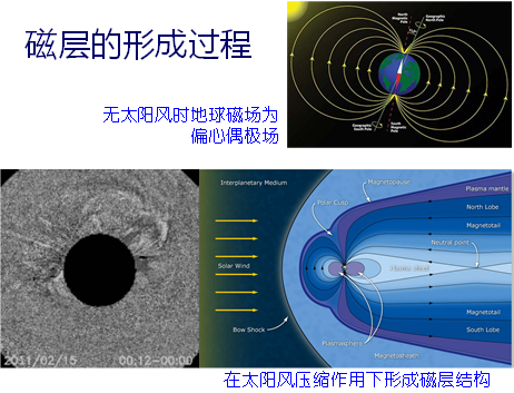 地球有磁場,但在太陽風(fēng)(帶電粒子)的吹動下,地球磁場變成現(xiàn)在的樣子。太陽的輻射產(chǎn)生光化學(xué)作用,高層的電離層以及接近地面的大氣等,都受到了影響。中高層大氣位于地球上方30-100公里,這里空氣稀薄、開始電離、熱源和熱匯復(fù)雜。電離層位于地球上方60-1000公里,這里的空氣部分電離、有中性和帶電粒子共同作用、影響無線電波。磁層位于地球上方1000公里到幾十個地球半徑,這里的空氣完全電離、空間等離子體完全受磁場控制。