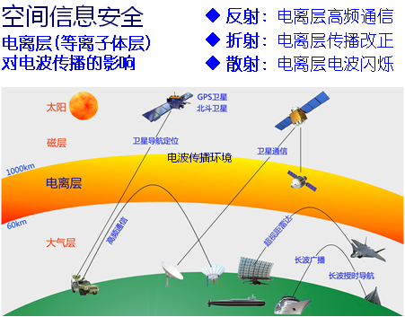 無線電波的傳播依賴于電離層,它們要么在電離層反射、要么穿過電離層、要么在電離層折射。電離層的變化就影響無線電波的傳播。人類需要通過各種模型的計算,對電離層傳播進行改正,保證無線電通訊不受影響,保證定位的精度。