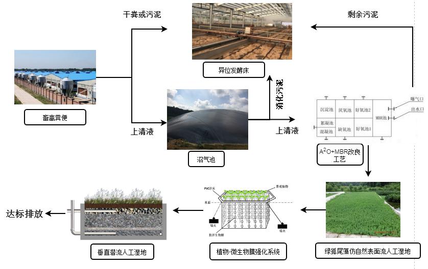 而針對我國規(guī)?;B(yǎng)殖場來說,近些年來大多采用固液分離—厭氧發(fā)酵—好氧曝氣傳統(tǒng)三段式工業(yè)處理模式處理養(yǎng)殖廢水,即理、化并用技術(shù)。該處理模式具有占地小、季節(jié)適應(yīng)性強(qiáng)以及可產(chǎn)出部分能源氣體(沼氣)等優(yōu)點(diǎn)。但同時(shí)也存在投入、運(yùn)行成本高,有機(jī)物和氮的去除不徹底,除磷工藝缺乏等缺點(diǎn)。隨著《畜禽養(yǎng)殖業(yè)污染物排放標(biāo)準(zhǔn)》(征求意見稿)的逐步落實(shí),現(xiàn)行的畜禽養(yǎng)殖廢水處理工藝大多已無法滿足新標(biāo)準(zhǔn)的排放要求。