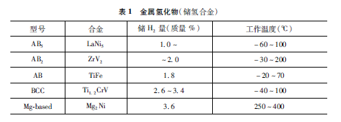 鎳氫電池的負極材料主要是一個跟氫結(jié)合很強的元素與跟氫結(jié)合不強的元素,通過適當(dāng)?shù)某煞峙浜?,組成化合物,這樣又能夠吸收氫氣,同時也能夠放出氫氣的化合物(表1)。一方面可以作為氫氣儲存使用,同時也可以作為鎳氫電池負極材料使用,這也是目前最大應(yīng)用領(lǐng)域。
