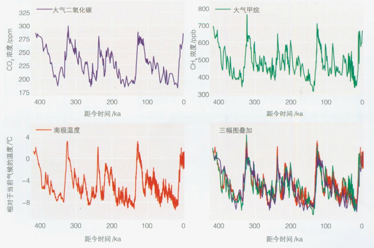 圖3 根據(jù)冰芯記錄得出的氣候變化數(shù)據(jù)(時(shí)間尺度為千年)
